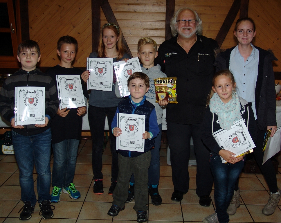 Im Rahmen einer Siegerehrung für die Teilnehmer am Geschicklichkeitsparcours überreichte Wilfried Hanke Urkunden und kleine Preise an alle Kinder / Jugendlichen. Sieger wurde Aaron dicht gefolgt von Paul und Nicole.