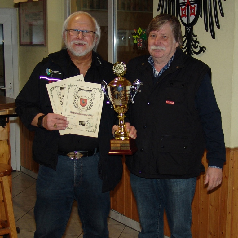 Abschließend wurde die Siegerehrung durch Wilfried Hanke und Michael Woitaschik durchgeführt. Die drei besten Schützen erhielten je eine Urkunde und einen leckeren Tropfen, als „Lohn“ für ihre hervorragenden Schießleistungen. Zusätzlich konnte Wilfried Hanke, als Sieger des Wettbewerbes, auch noch den Wanderpokal, den er 2011 schon mal errungen hatte, in Empfang nehmen. Es musste jedoch Niemand mit leeren Händen nach Hause fahren, denn unsere Vereinskassiererin, Franziska Albert, hielt für jeden Teilnehmer am Pokal-Osterschießen noch bunt gefärbte Ostereier bereit.